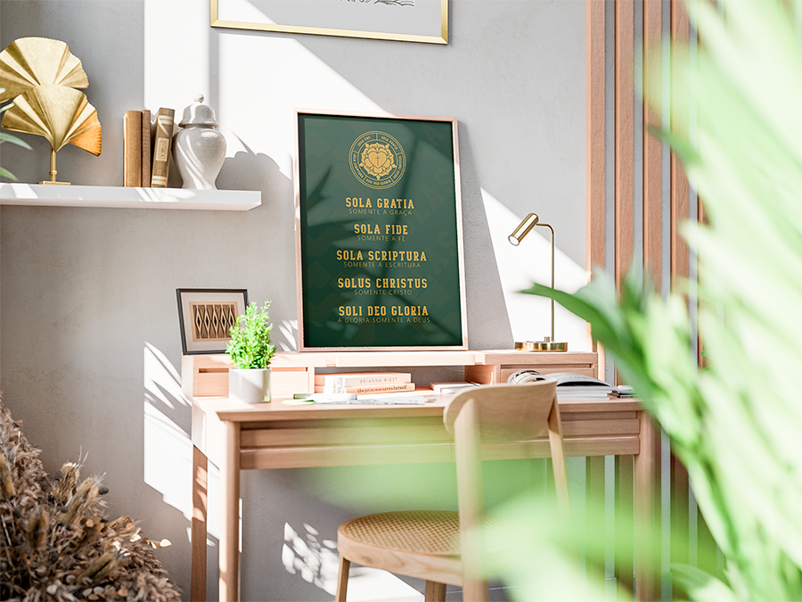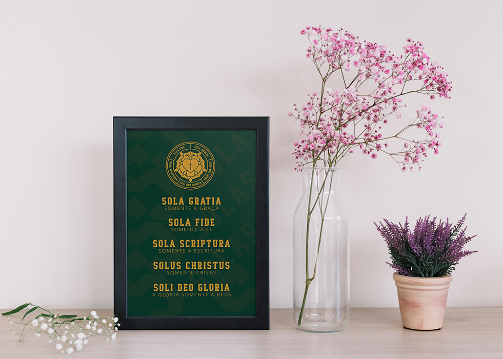 Este quadro exclusivo destaca os Cinco Solas – os pilares da fé cristã: