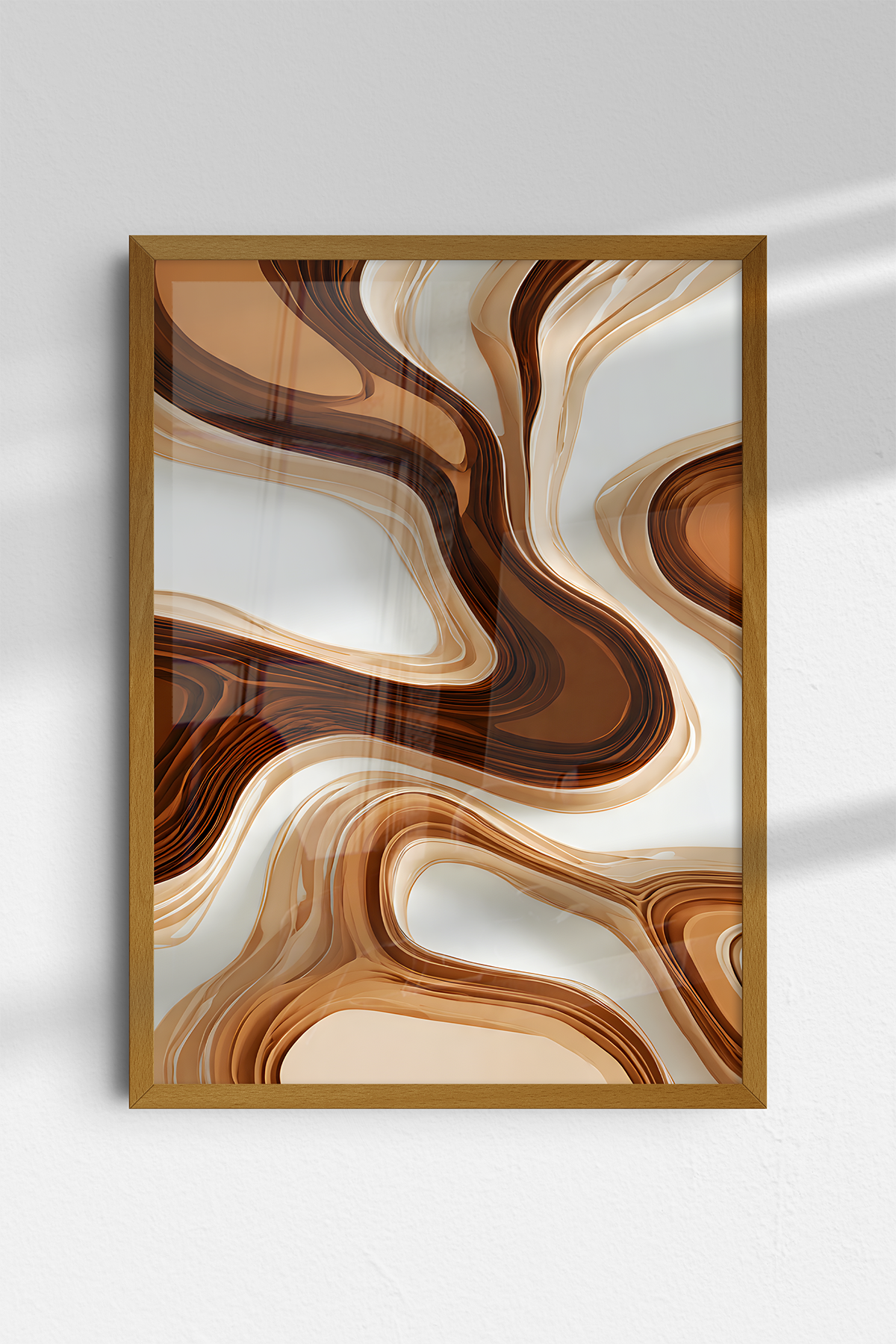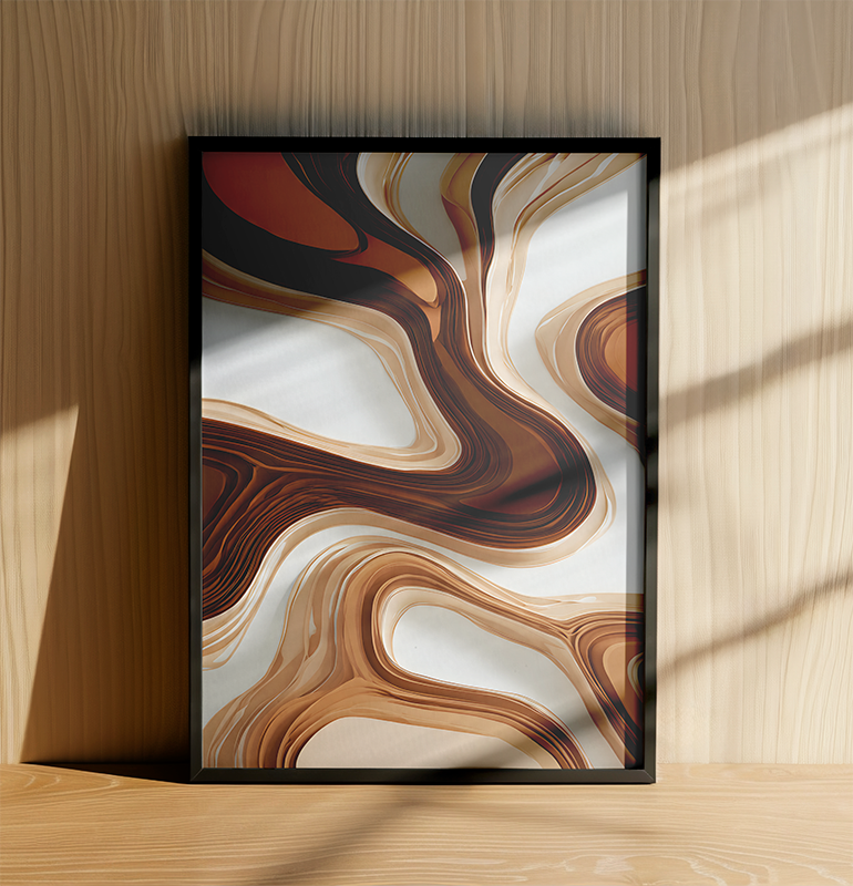 Paleta Orgânica: Com variações de marrom café, caramelo e off-white, esta arte traz uma estética terrosa e sofisticada que harmoniza facilmente com móveis de madeira.