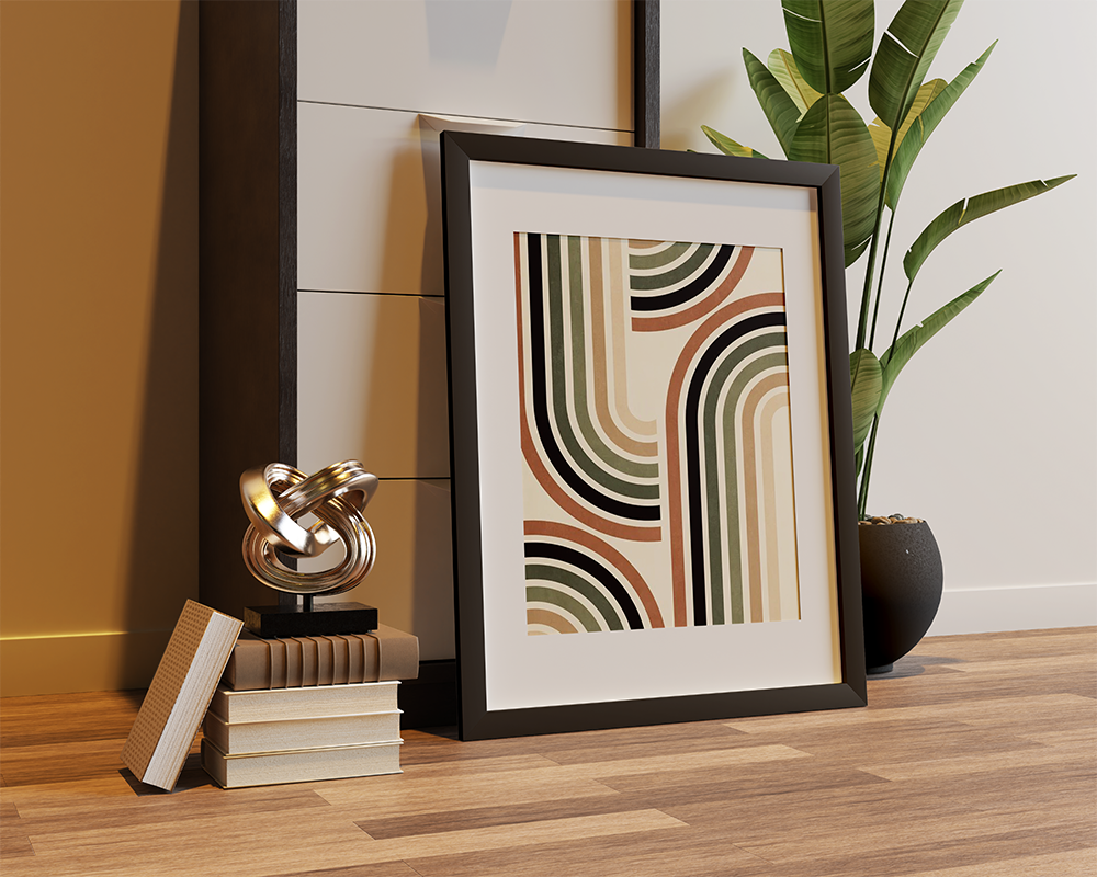 Linhas curvas em tons suaves e contrastantes formam um padrão retrô sofisticado, trazendo dinamismo e elegância para qualquer ambiente.