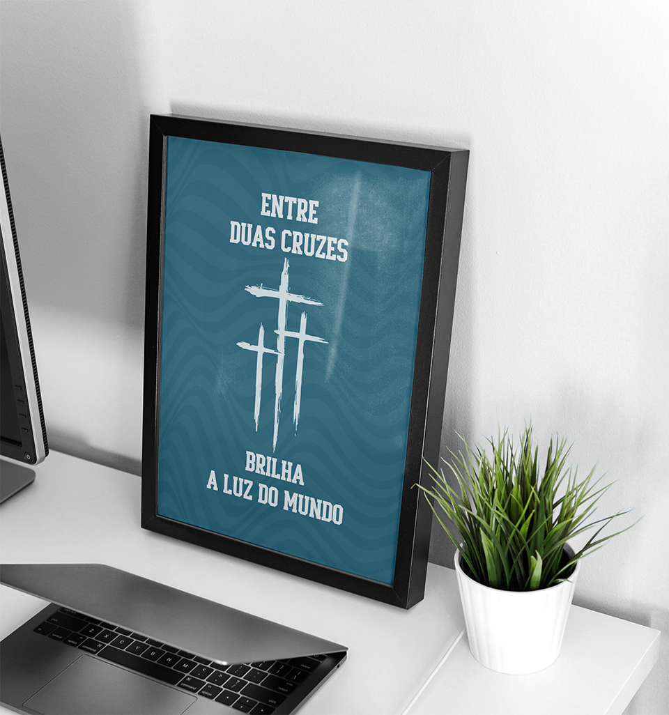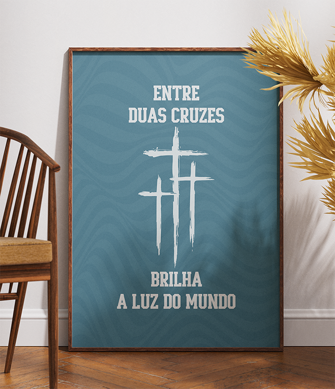 Tipografia Imponente: O uso de fontes robustas garante que a mensagem seja o ponto focal, perfeita para ambientes que buscam transmitir paz e reflexão.