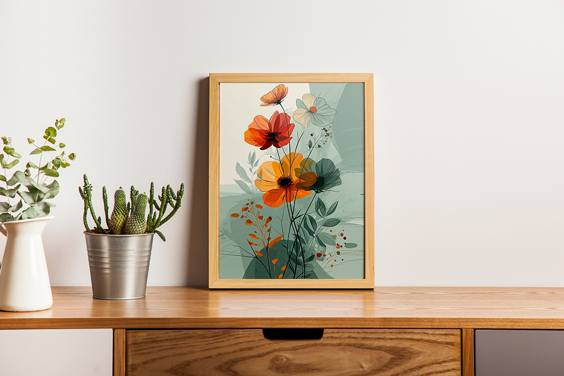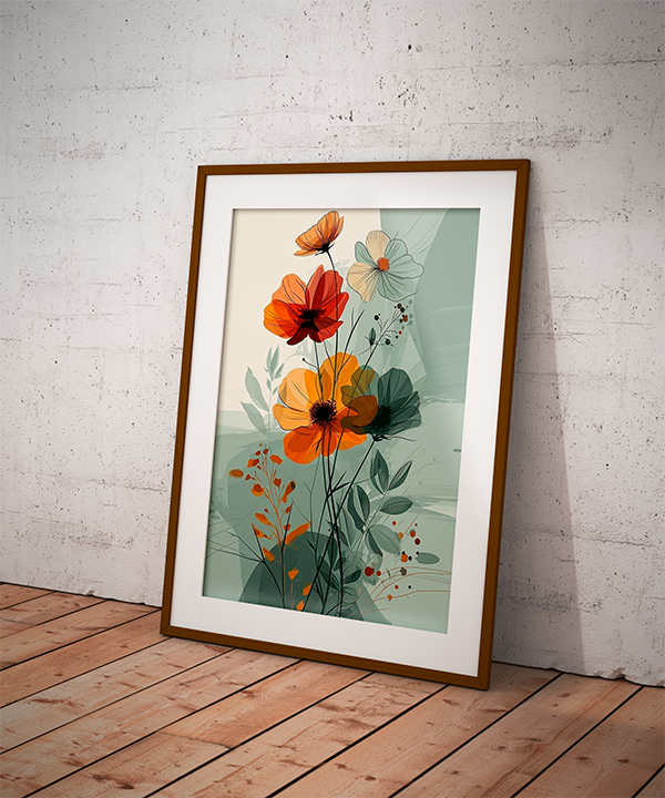 Linhas curvas em tons suaves e contrastantes formam um padrão florido, trazendo dinamismo e elegância para qualquer ambiente.