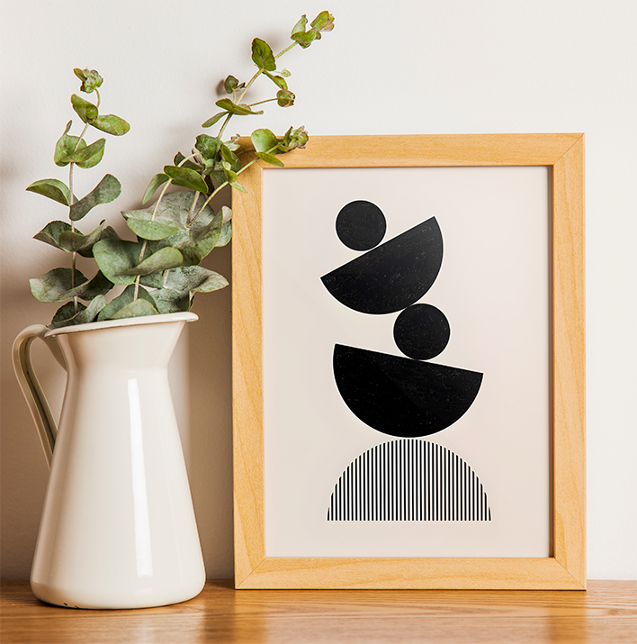 Esta arte é um exercício de harmonia visual, ideal para quem busca uma decoração que transmita estabilidade e clareza.