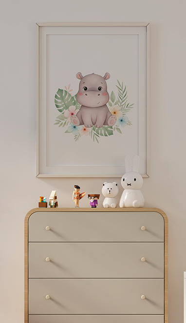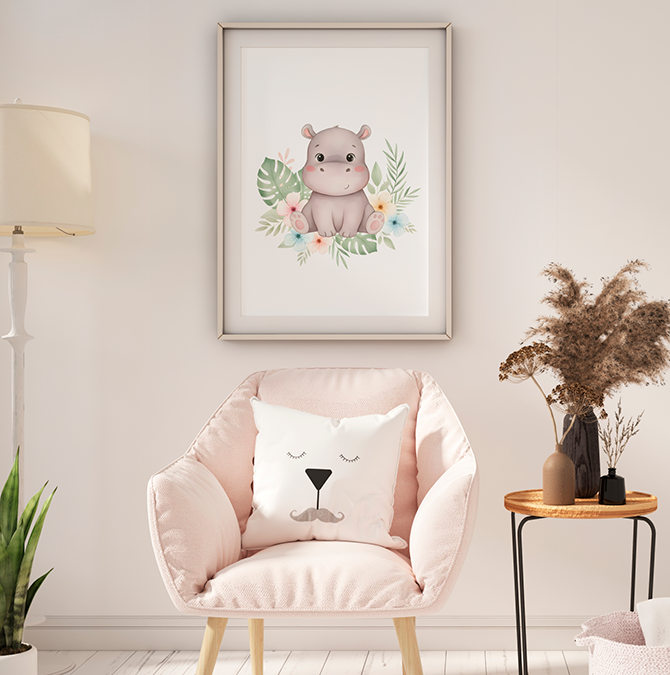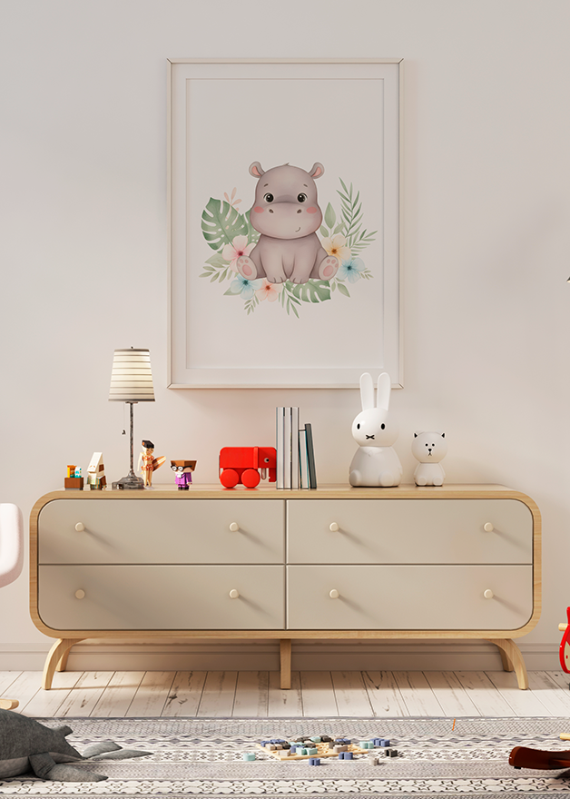 Traga uma atmosfera de paz e doçura para o quarto com este hipopótamo encantador.
