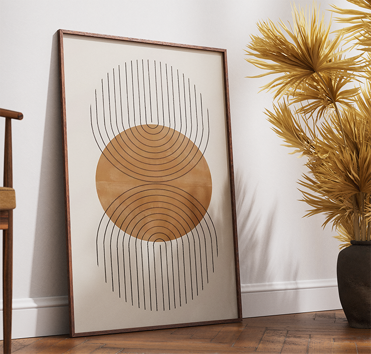 Minimalismo Geométrico: Com um fundo neutro e traços precisos, esta peça é perfeita para ambientes com estética contemporânea, escandinava ou Mid-Century Modern.