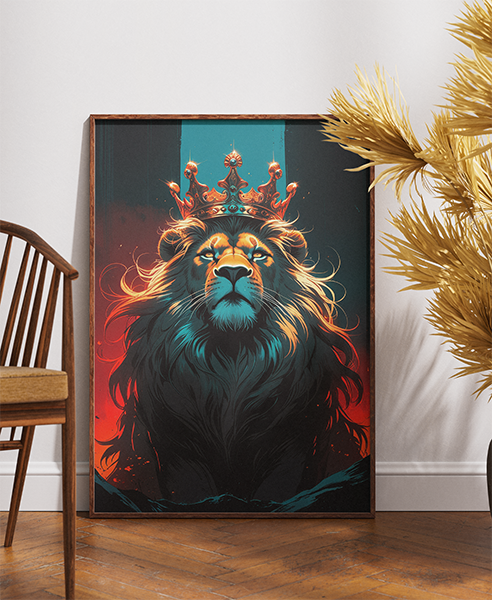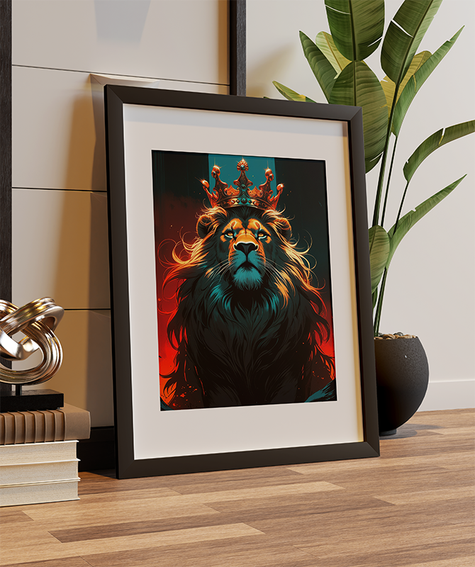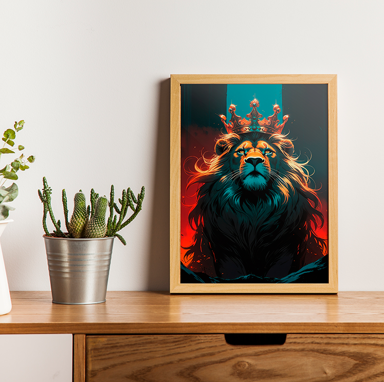 Uma obra de arte que redefine o conceito de imponência e poder. Este quadro combina a figura clássica do rei da selva