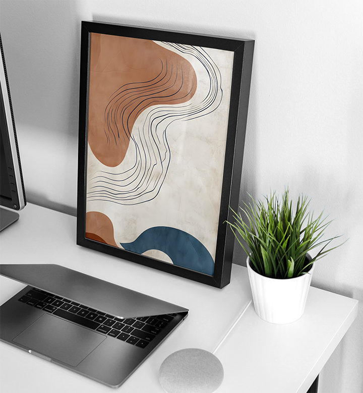 Movimento Fluido: As linhas finas e sinuosas atravessam a tela como um rio, adicionando dinamismo e uma sensação de continuidade ao espaço.